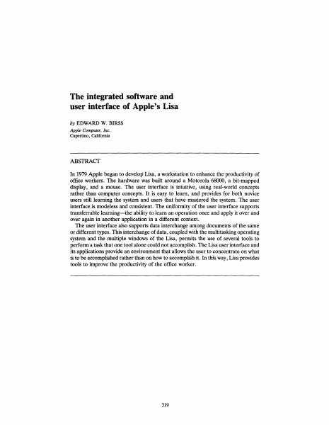 Birss The Integrated Software And Hardware Of The Apple Lisa