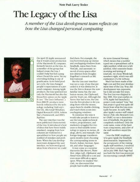 Tesler The Legacy Of The Lisa Macworld