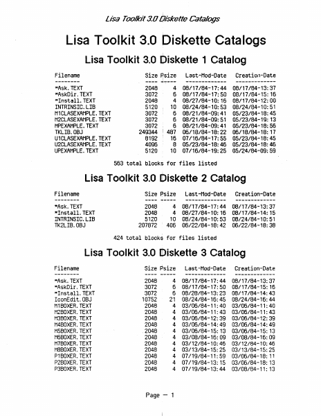 Toolkit 3.0 Diskette Catalogs