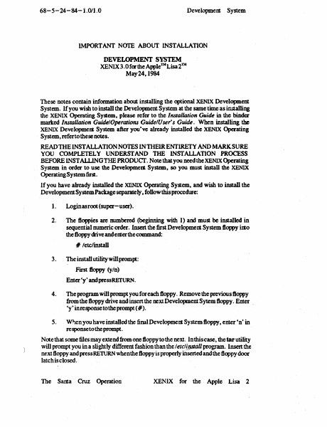 XENIX Installation Guide For The Apple Lisa 2 May84