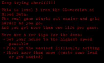 Trade automatic gun fire with hard-core criminals. "Blood Bath", a new shoot-em-up from Underworld Software, combines true interactive game play with the most realistic digitized video ever seen. Hard-core prisoners are on the loose in the town of Red Falls. Grab a gun--it's time to clean up the streets. Try a FREE demo of BloodBath and you could win $500!! Visit our web-site or download the demo for details: http://www.uwgames.com