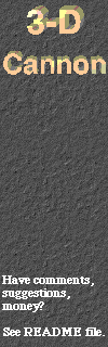 3-D Cannon is a shareware game that uses 3-D polygon graphics with texture mapping. Two players command stationary tank-like weapons that sit on a fractal mountain and take turns shooting at each other. When players shoot at each other the camera follows the bullet as it flies through the air.