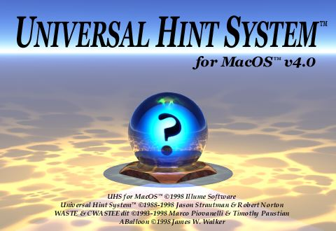Features -------- - PowerPC and 68K native. - Over 500 prescriptions edited for consistency and clarity, with more to follow... - Over 60 prescriptions not available anywhere else. - More than 10 prescription types, including: - Text prescriptions with support for embedded sounds, pictures, files, and Internet links. - Patch prescriptions that automatically locate and duplicate the intended target. - Progressive Walkthrough prescriptions that support the Universal Hint System. - An open architecture that lets anyone create prescriptions using simple, intuitive editors. - Automatic compression for smaller prescription files. - Direct access to Internet gaming sites from prescriptions. - Comprehensive online help and help balloons. - Commercial look-and-feel at a shareware price.