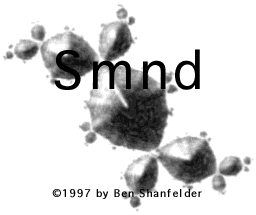 Smnd is a program which allows "interactive" exploration of the Mandelbrot and Julia sets, in addition to any of the generalized 2-d "Escape Time Fractals." The calculation algorithm is written in highly optimized PPC assembly and should result in realtime display updates on any 100mhz+ PPC. This allows for realtime animations of Julia sets as one traces out points in the Mandelbrot set!