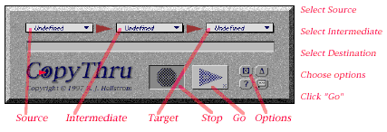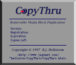 CopyThru v3.1 makes duplicates of HFS volumes with the option of segmenting the copy through a fixed (or simply not-removed) volume. In other words, it is a multi-pass block copier for removable media. It is particularly useful for making backups of valuable data stored on Zip, EzFlyer, Jaz, and other carts. CopyThru can also perform high-speed direct disk-to-disk copies.