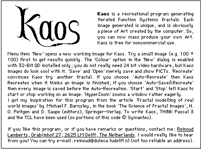 Kaos is a science or math tool. This download is a StuffIt archive file (63 KB). Archived from the funet-legacy collection and preserved here for historical interest.