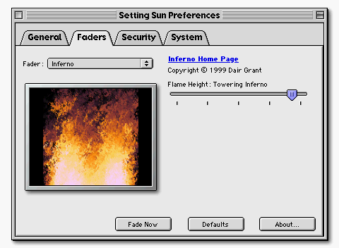 Setting Sun requires Mac OS 8.1 or later, with QuickDraw 3D and OpenGL recommended. It is available from: