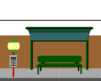 BusStop is a clock. But its way of displaying a time is unusual. Let's suppose that you are watching a busstop from an opposite side of a street. As there's an excellent bus service in a town, a bus comes every five minutes. You can see a route number, persons, sparrows and a bench. The route number indicates an hour. A person comes every one minute. A sparrow appears every five minutes. A bench has an ad on its back. It changes everyday. You can set your strings for it. Enjoy!
