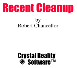 Do you like Apple's Recent Applications menu, but find that installers and other items make it difficult to find what you are looking for? Recent Cleanup is a control Panel that allows you to remove items from the Recent Applications menu that match certain keywords you define. For example, to remove installer applications, simply enter the keyword "install" in the control panel (you may define as many keywords as you wish). All entries in the Recent Applications menu that contain the word "install" will be removed at startup, or when you press the command-option-c (the hot key sequence).