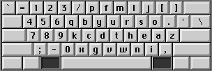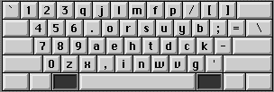 The Why As a lefty, I found the Dvorak layout a little less useful in building speed. So I created the Dvorak Lefty layout. I popped the keys on my PowerBook 1400c and arranged them in a mirror image of the Dvorak layout, provided by Dvorak International (thanks, guys). I then used ResEdit to create the KCHR resource, remapping all the keys to the new layout (including the option & shift-option characters). I never learned to touch-type, but have managed to get around 40 wpm staring at the keyboard. I have been able to catch up to that with less finger strain with this layout.