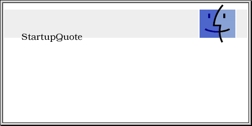 StartupQuote displays a new quote at each startup. Unlike other 'fortune cookie' programs, the quote is REALLY displayed at startup; no INIT, a new StartupScreen file is simply built by the StartupQuote application.