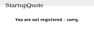 StartupQuote is distributed as shareware ($10). By registering at Kagi, you'll get an unlock code that will allow you to add new quotes, remove or edit existing ones, import/export quotes text files. Unregistered versions display the default quotes set.