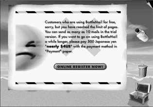 Title: BottleMail Ver2.0 for MacOS Version: 2.0 Category: Internet License: Shareware File Size:3,700KB Price: $5(10Bottles for trial) Release date: 05/28/1999
