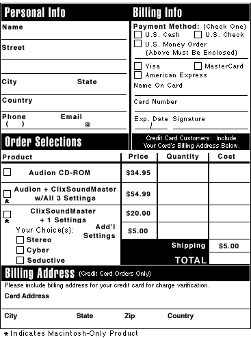 Clixsounds can be reached at: Internet: clix@ionet.net America Online: CLIXSOUNDS