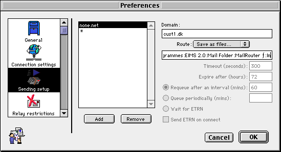 The Avalonia MailRouter is an extension to mail servers such as Apples Internet Mail Server (AIMS), Eudora Internet Mail Server (EIMS) or Stalker Internet Mail Server (SIMS). It is supposed to be running in the background on the same machine as the mail server, without taking more of the CPU and memory than absolutely needed.