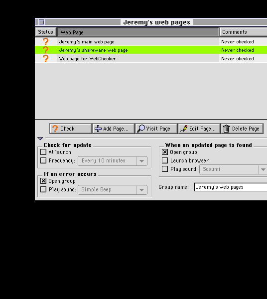 WebChecker then monitors the web pages you visit with your browser, and marks them as "Visited" if they're part of WebChecker's list.