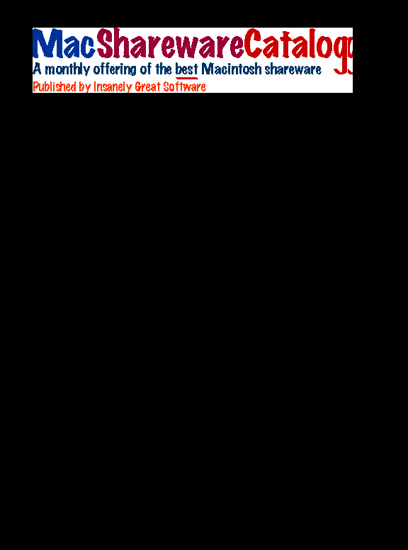 The MacSharewareCatalog is a catalog offering from Insanely Great Software with complete descriptions of top-quality shareware that can be ordered directly from the catalog. United States and international orders are welcome.