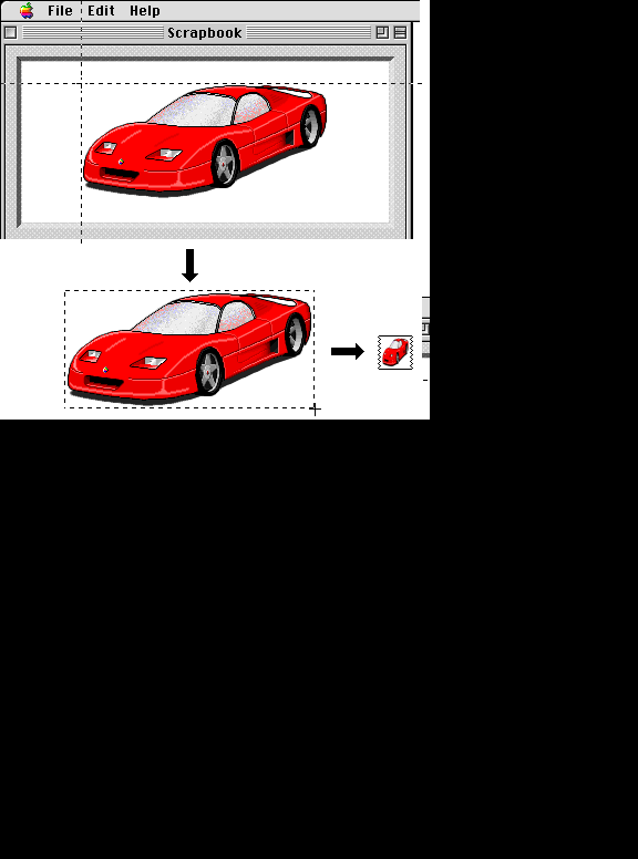Captured picture will be saved as a picture clipping file in the DeskTop with a thumbnail icon. So you can see it later just by double-cliking them from the Finder. No need to use graphic application program. Snap'n Clip has many nice features to make the screen capturing easy.