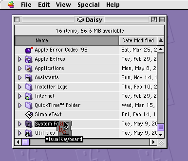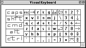 This is the VisualKeyboard 1.2 package. It contains - an extension that creates a floating onscreen keyboard, so you can type using the mouse. - an utility to configure the layout of the floating keyboard - a Read Me - Matt Slot's TextServiceManager Fix.