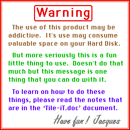 thousand and millions of colors. Tile-it is also the most userfriendly of these kind of application. **No other applications in its class is as easy to use **. You must try it to believe it.