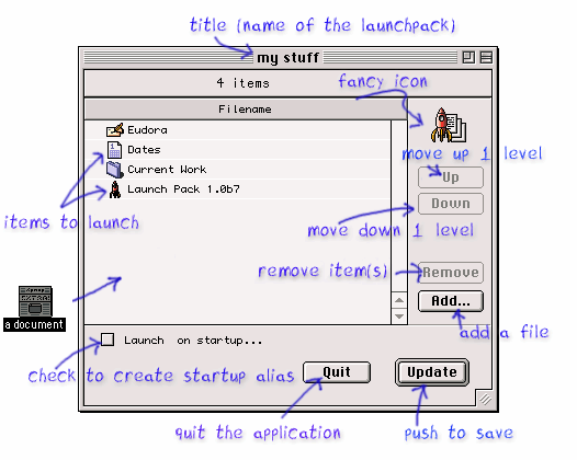 Launch Pack 1.0 is a drag & drop utility to create files that launch multiple documents and applications or opens folders by a simple double-click. It's very easy and straightforward to use and can also create aliases or copy files on the fly. It preserves custom icons so you can give the launchpacks your own look as you like.