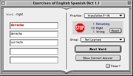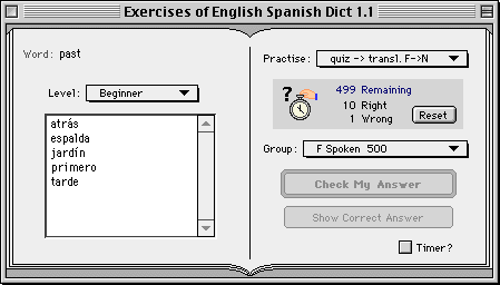 'English Spanish Dictionary 1.2' is a dictionary module for use with the 'Verbs & Nouns' and 'V&N Lookup' programs. You can download the latest versions of 'Verbs & Nouns' and 'V&N Lookup' directly from the Info-Mac archives (the Education/Language directory), or via links from this web site site: .