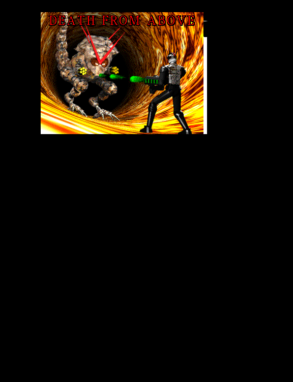 In the year 3000, the Earth has been ruthlessly enslaved by an alien race. You have managed to escape from a mining camp. Now dressed in power armor and armed only with a laser blaster, you have brought the fight for freedom to the aliens' home world.